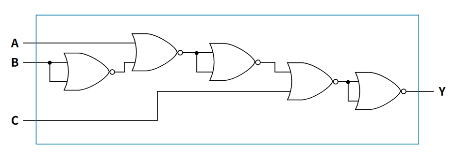 2) 위 회로를 2입력 NOR gate만을 이용한 무접점 회로로 그리시오